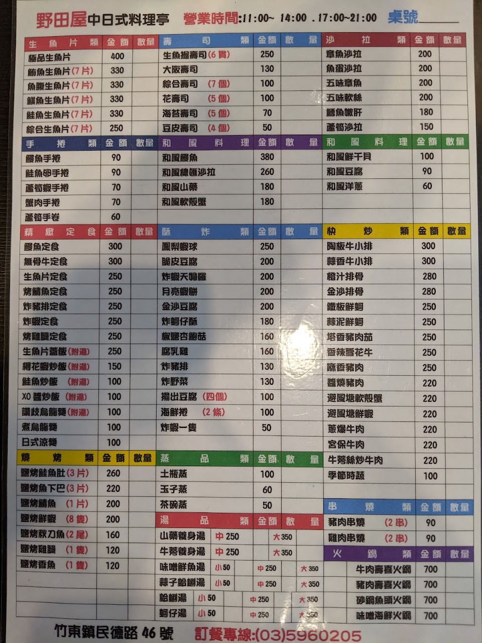 2024最新在地推薦餐廳的菜單_野田屋中日式料理的菜單、圖片