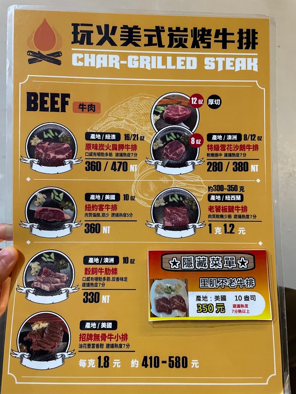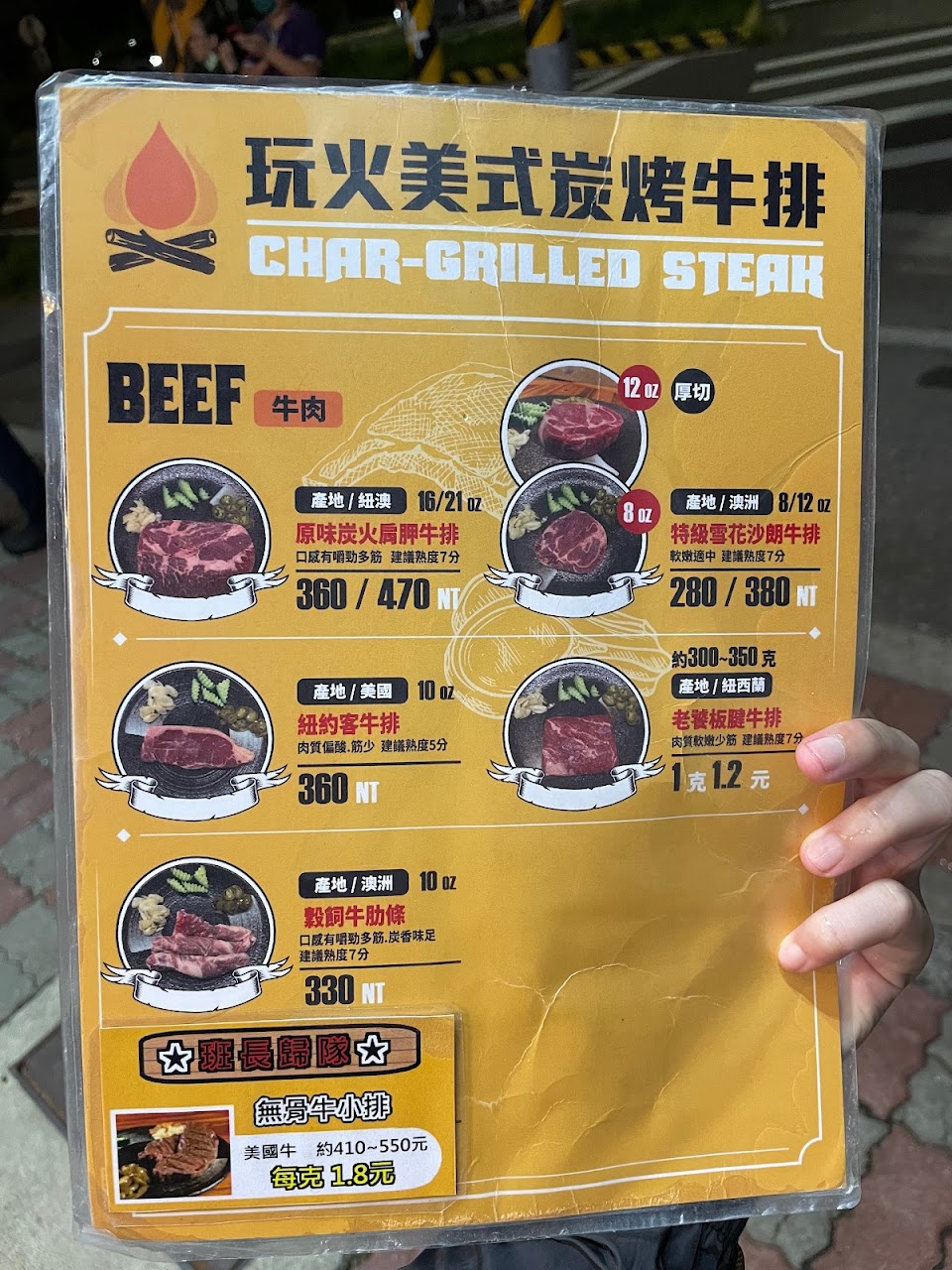 2024最新在地推薦餐廳的菜單_玩火美式炭烤牛排的菜單、圖片