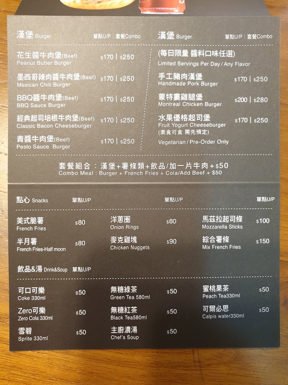 漢堡非常非常美味,值得特別來吃;然而套餐的湯、薯條都很不好吃,內用湯水而淡,薯條相互粘著。建議單點。