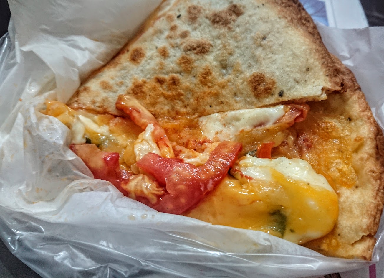 餐點飲料的品質也非常的普通,我們只喝完飲料,就將整個瑪格麗特比薩帶回家吃,回家烤熱吃~裡面就是蕃茄加蛋,餅皮也不脆,一個要 290 元耶!這個不推薦哦!