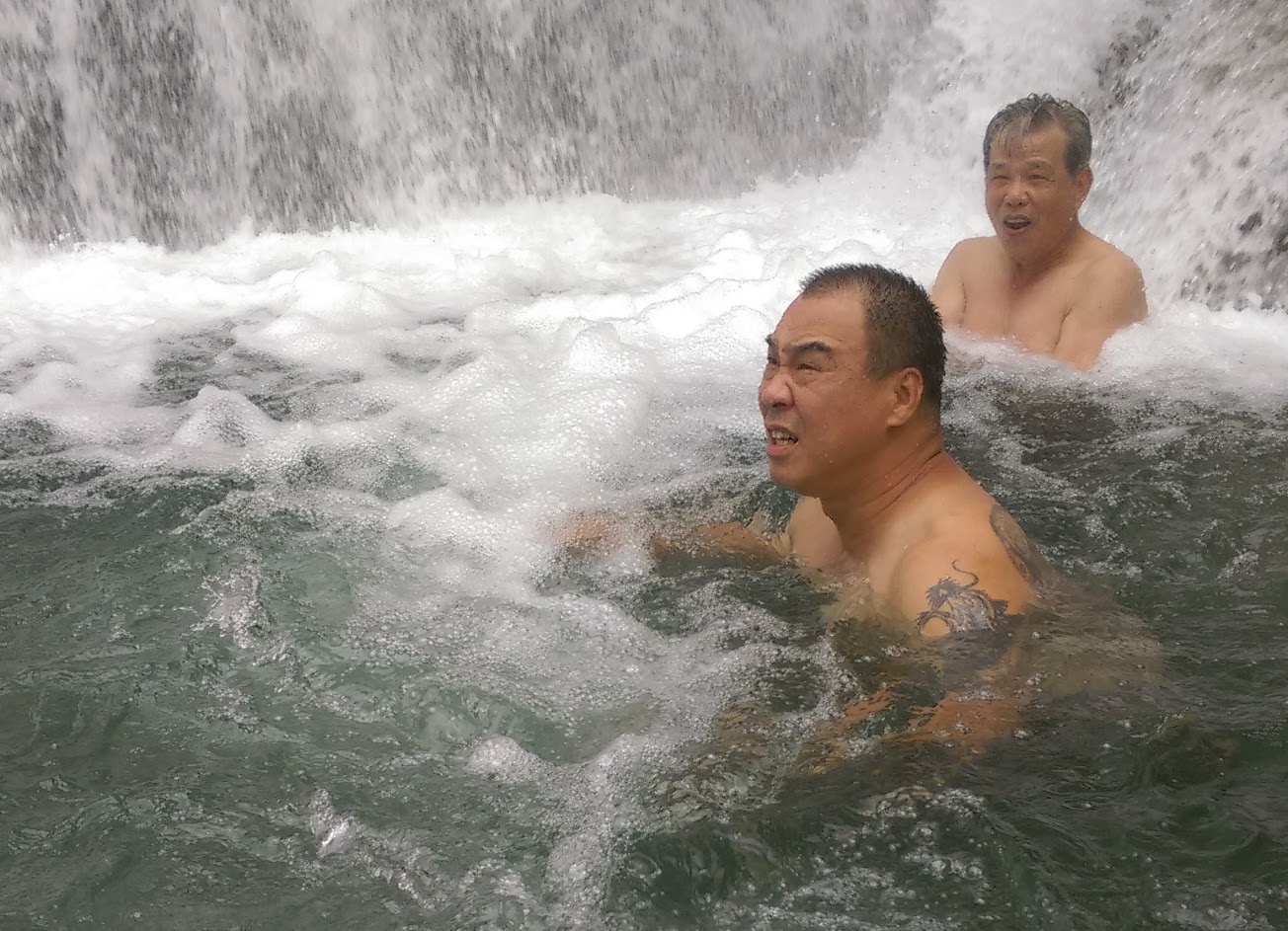 粗眉仔沒有帶泳衣,所以只是浸浸雙腳和洗洗面而已,但已經覺得冰涼透骨,凍澈心脾,舒服過涼冷氣。不是粗眉仔誇張,粗眉仔還覺得浸過水的皮膚好似剝殼雞蛋咁嫩滑,好過去韓國整容……