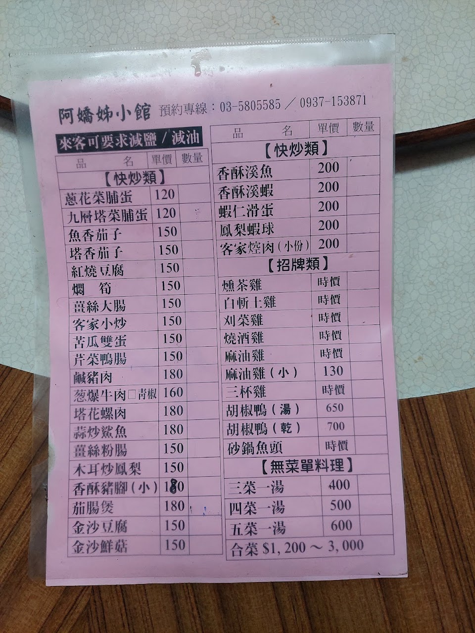 有幾樣菜比方說是胡椒呀等等都要先打電話預訂比較容易備料, 東西好吃,價格平易近人,會想再次光顧。