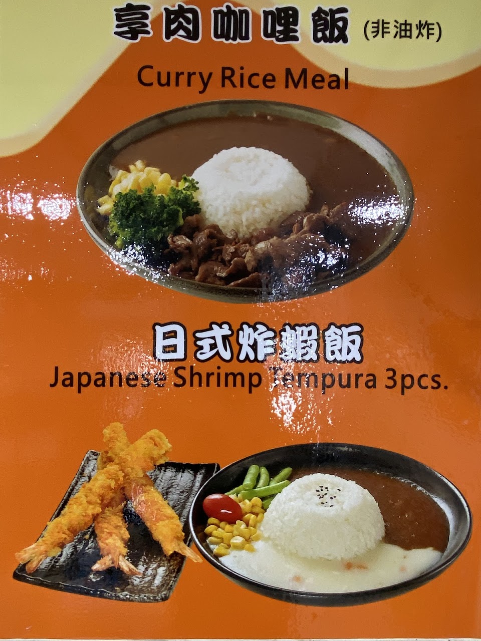 炸物炸的很好吃,軟硬度剛好,但是咖哩的醬料真的只有顏色深而已,咖哩的味道很很很淡,然後加玉米跟黃瓜,不確定有沒有比較有明顯味道的咖哩餐點