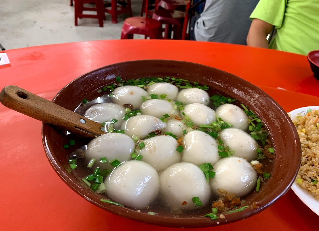 印象中有炒飯麵 客家湯圓湯 滷味拼盤 土雞 價格其實不高 湯圓一碗60元(炒飯記得也差不多) 份量足夠(圖片中的是三碗裝一起) 喝起來像貢丸湯 湯圓餡像是蘿蔔絲燒賣 比聽起來的樣子好吃多了 炒飯 滷味也不輸 都必點 白斬雞會附一個金桔醬去腥味 口味不太一樣 這就要斟酌了