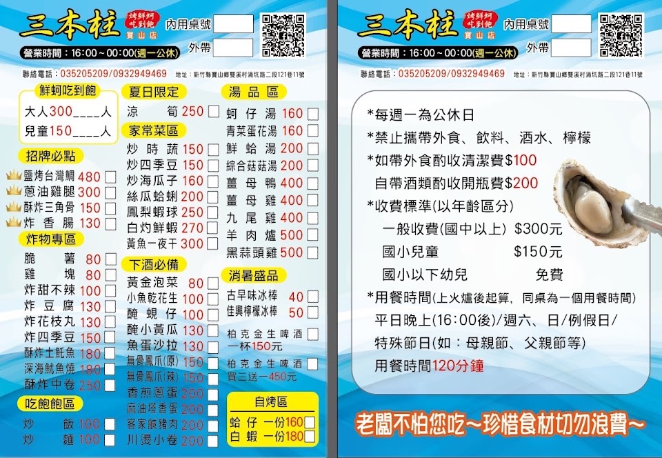 烤蚵吃到飽一人300元限時2小時不收服務費
