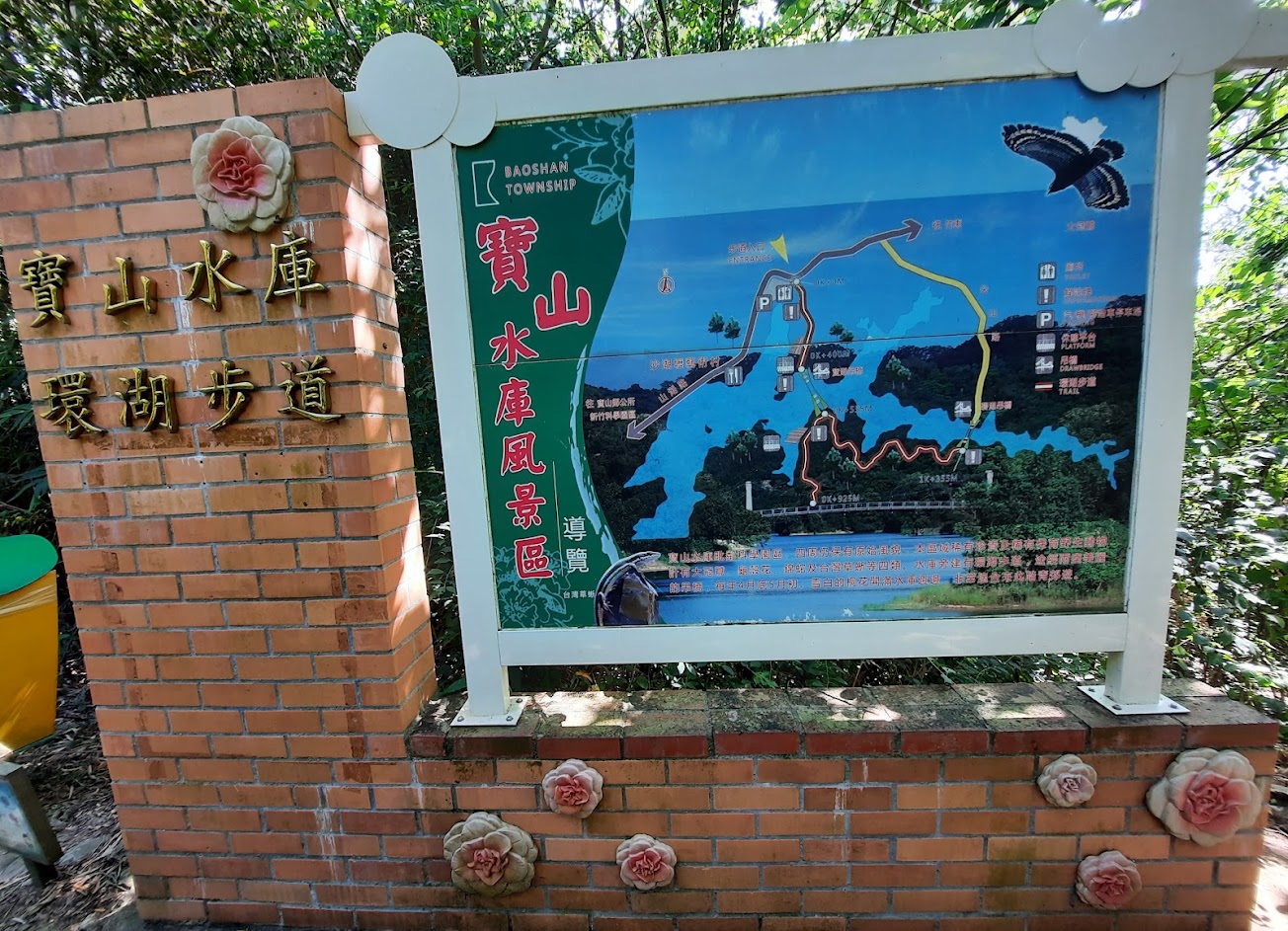 今中秋節午後炎熱,來此走走環湖步道,沿途綠意,寶山湖泊風景美如畫,走過吊橋左右方向都可再走一小段路,健走1~2小時,稍微流汗,也達到了運動健走的功效??