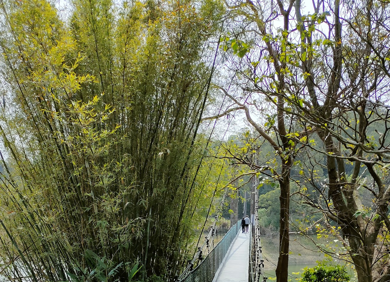 人少清幽,有湖景有吊橋的樹蔭步道。