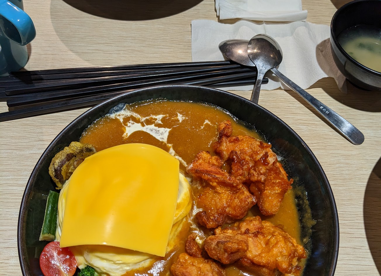 點了梅花豬肉塊絲滑歐姆蛋咖哩飯(中辣)+起司