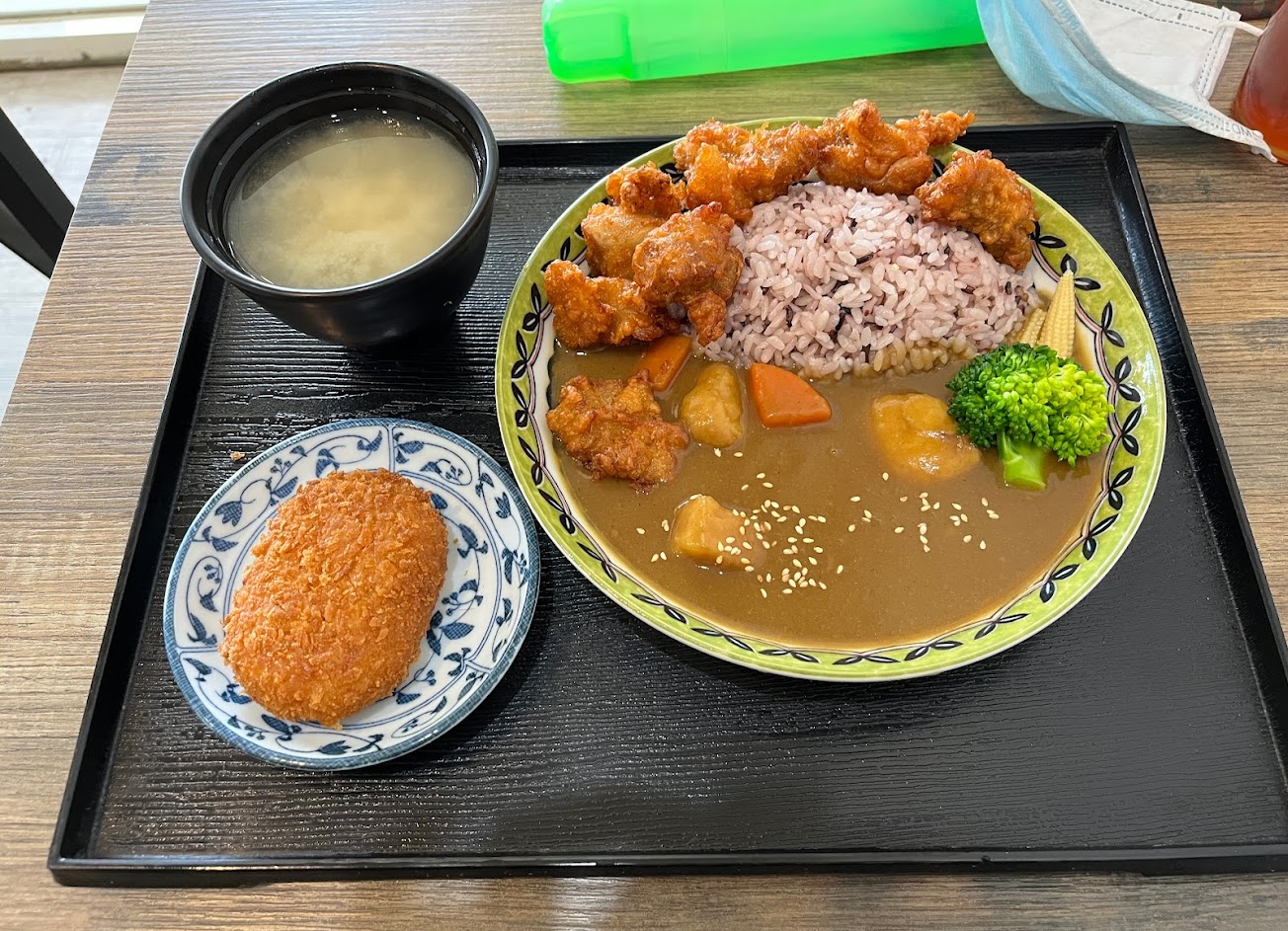 家常甜口的日式咖哩,搭配新鮮蔬菜和紫米飯吃起來很清爽,唐揚雞炸的很酥脆保有肉汁,很像傳統市場的台式炸雞,整體好吃,環境、服務都不錯?