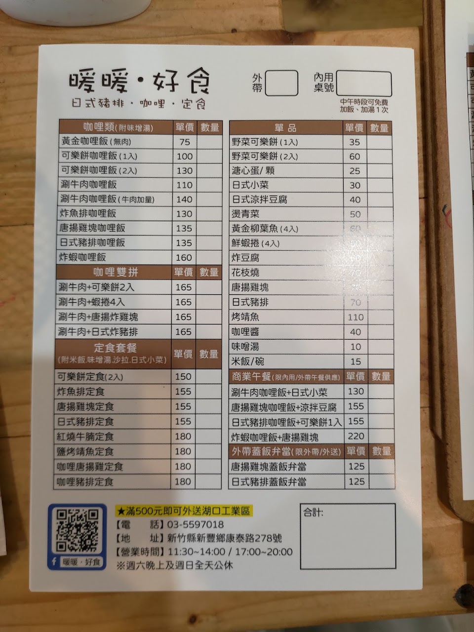 2024最新在地推薦餐廳的菜單_暖暖·好食 日式豬排·咖哩·定食的菜單、圖片