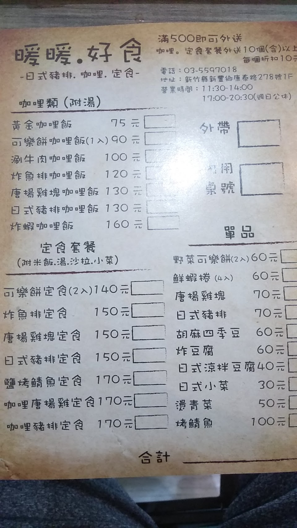 2024最新在地推薦餐廳的菜單_暖暖·好食 日式豬排·咖哩·定食的菜單、圖片