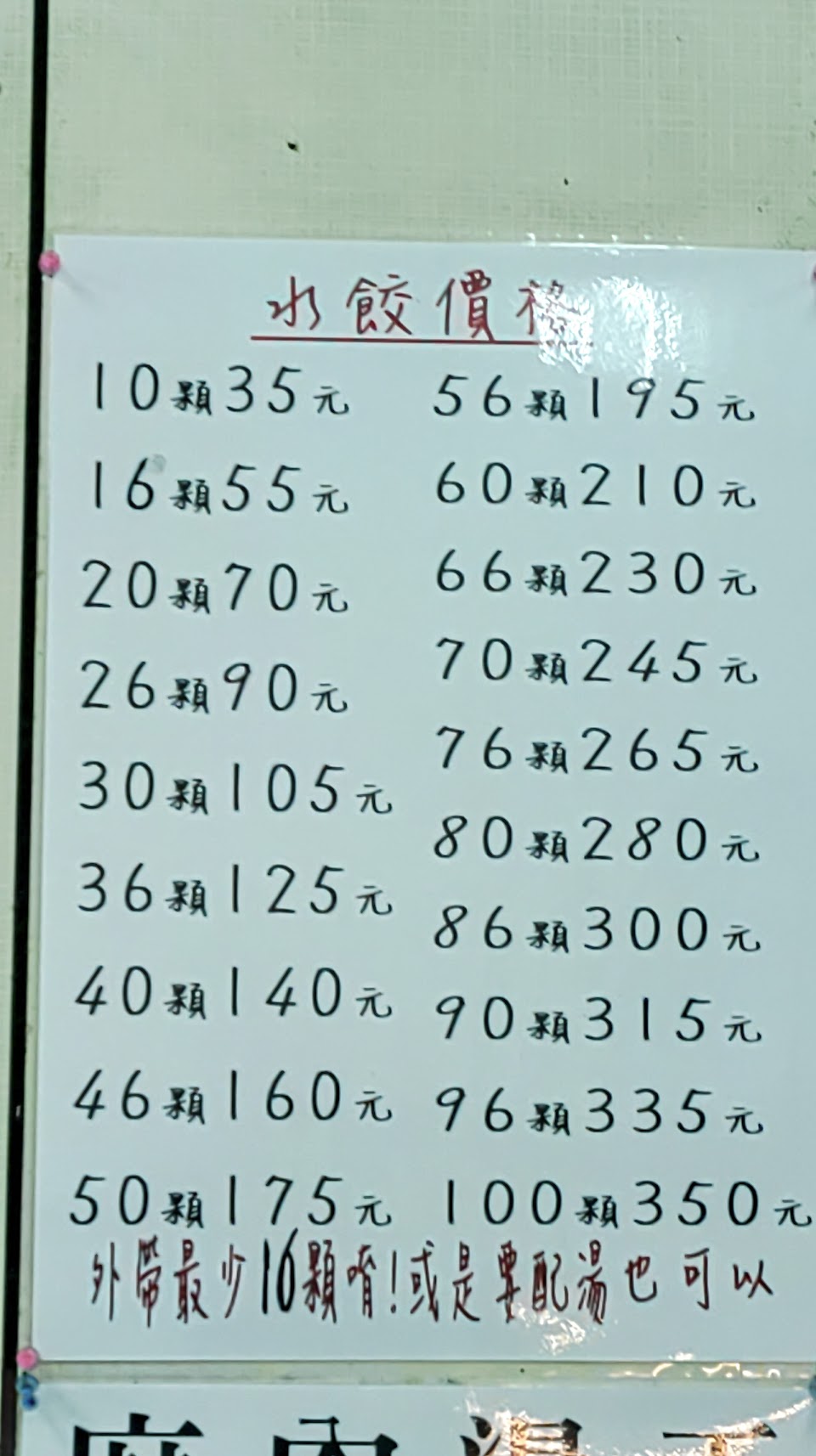 如果是外帶水餃,至少必須是16顆