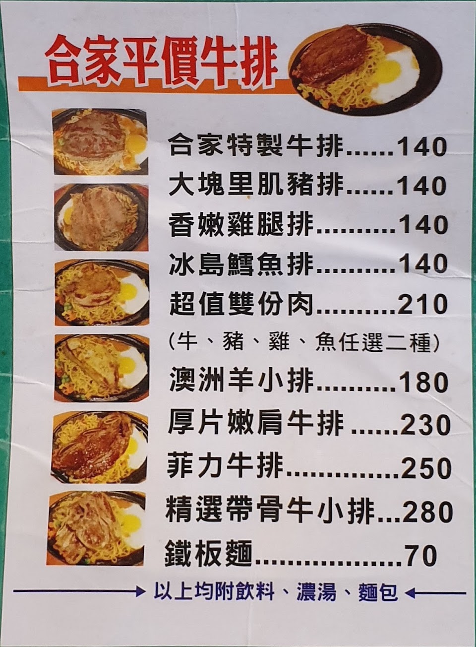 2024最新在地推薦餐廳的菜單_合家平價牛排的菜單、圖片