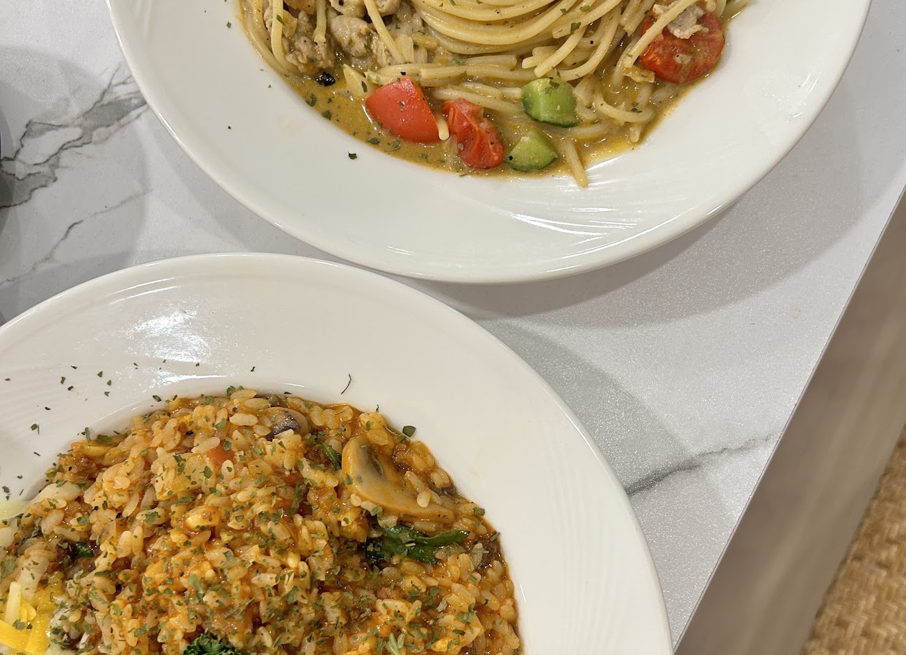 素食餐點有清炒鄉村野菇義大利麵、番茄熟時田園野菇義大利麵、貝夏媚松露野菇義大利麵、奶油松露野菇燉飯可做選擇,也可加量加$30或是焗烤$50