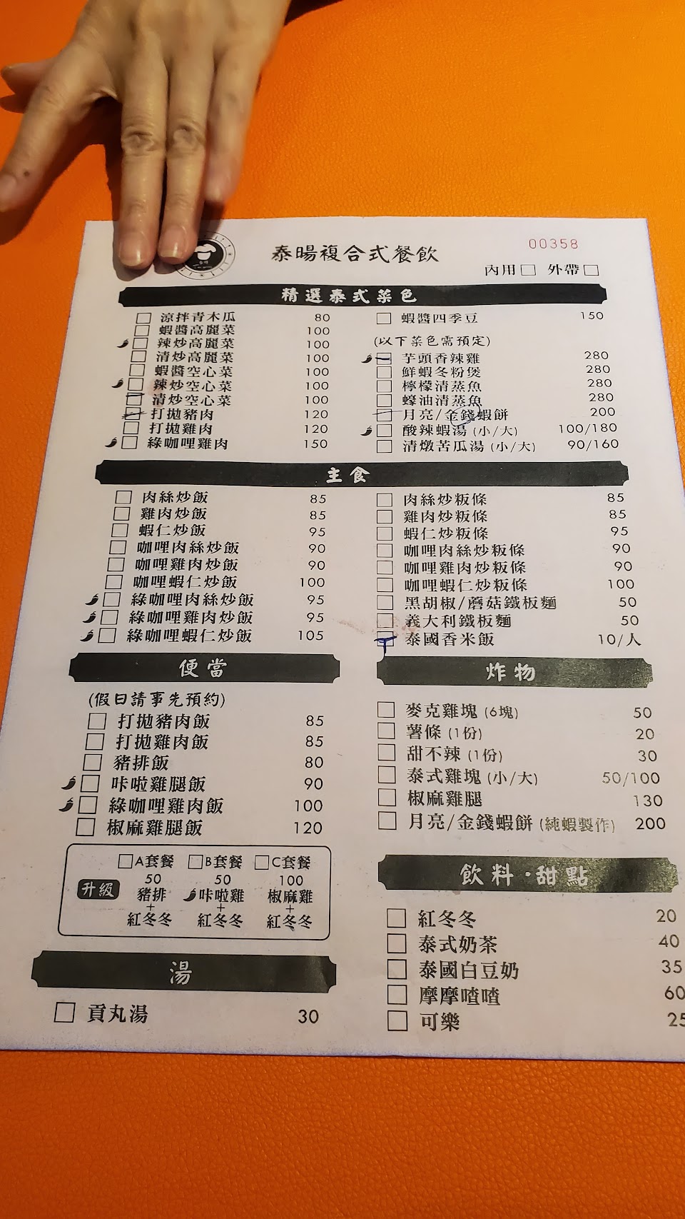有不辣跟辣的餐點,