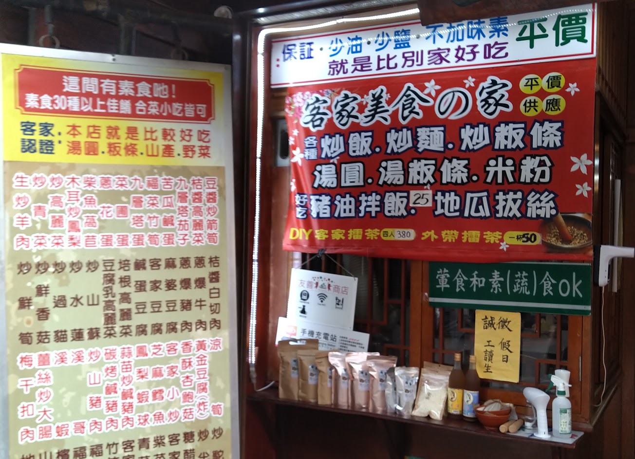 中午沒吃過,趁著過午餐時間後用餐的人少,到這一家有空調設備的店舖內用餐,菜單料理都是客家風味餐,隨意點了二碗湯粄條一盤客家小炒,不就端上桌我還以為是小菜盤,結果是自己下單「客家小炒」沒搞錯吧!份量少的可憐?,內容物魷魚乾變泡水魷魚?,沒蝦米?三層肉被換成瘦肉絲,又偏鹹味,連芹菜從少的可憐?。湯粄條的料理普普也沒特色,遠遠輸給中壢「懶得煮麵食館」,胡椒粉一點味道也沒有,下次絕對不會再光顧,把顧客當一次消費觀念。