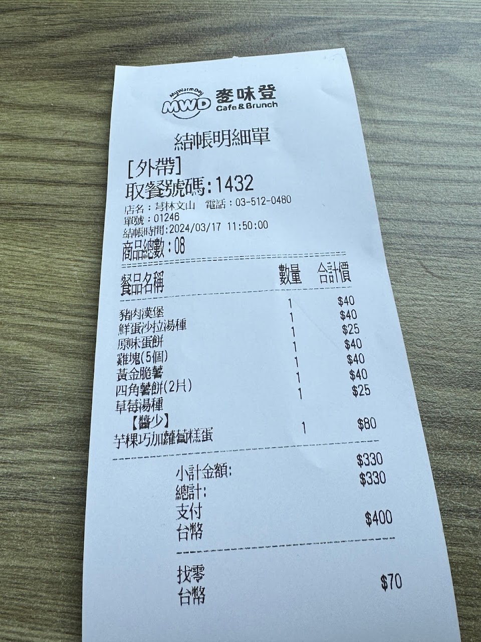 10/14 撥電話點餐後到店內取餐,結完帳後沒通知取餐也沒告知需等待就直接幫後面客人點餐, 當下以為自己的餐點還沒好, 故在店內等待(等了半小時),發現不少後面來的客人都陸續拿到餐點, 上前詢問才發現我的餐點早已完成擺在一旁, 當下詢問這是早就完成擺在一旁的嗎? 櫃來結帳的小姐(新面孔)不發一語也沒有道歉, 旁邊站著比較資深的女店員也不發一語…