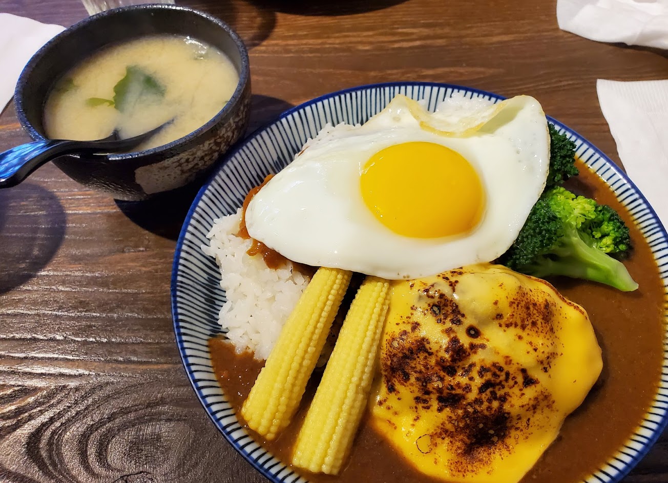 咖哩醬帶點微辣,半熟蛋也煎得很完美。 對女生來說是可以吃飽的份量喔