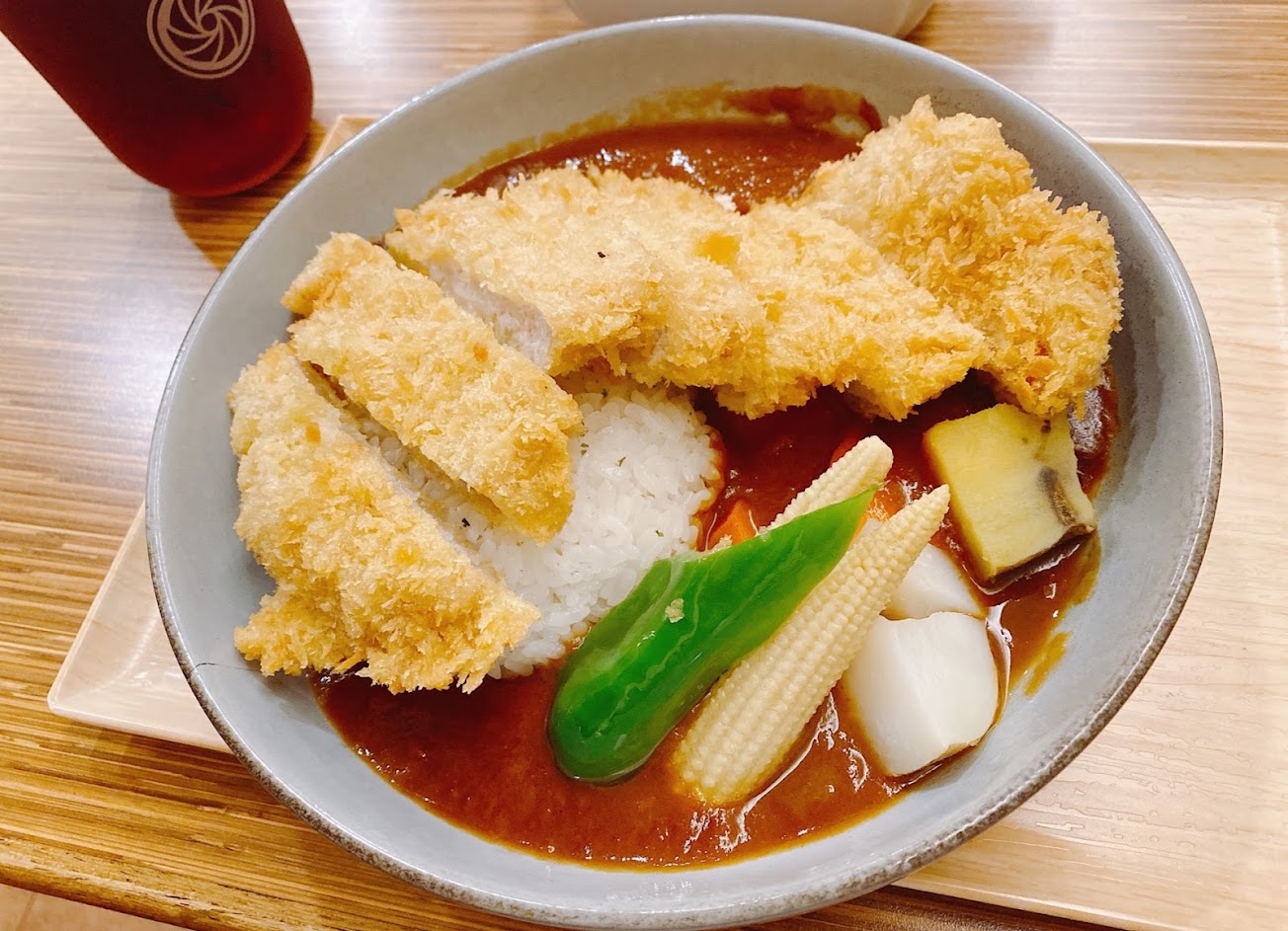 唐揚雞的表現比較一般般,不會太柴,中規中矩。咖哩口味是偏日式那種。倒是加點的豬肉炸串驚為天人(炸豬排炸法,來的時候是長長一根),一直在想跟普通炸豬排有什麼不一樣,可是直到吃完都不知道差在哪還有為什麼很少有人這樣炸(?