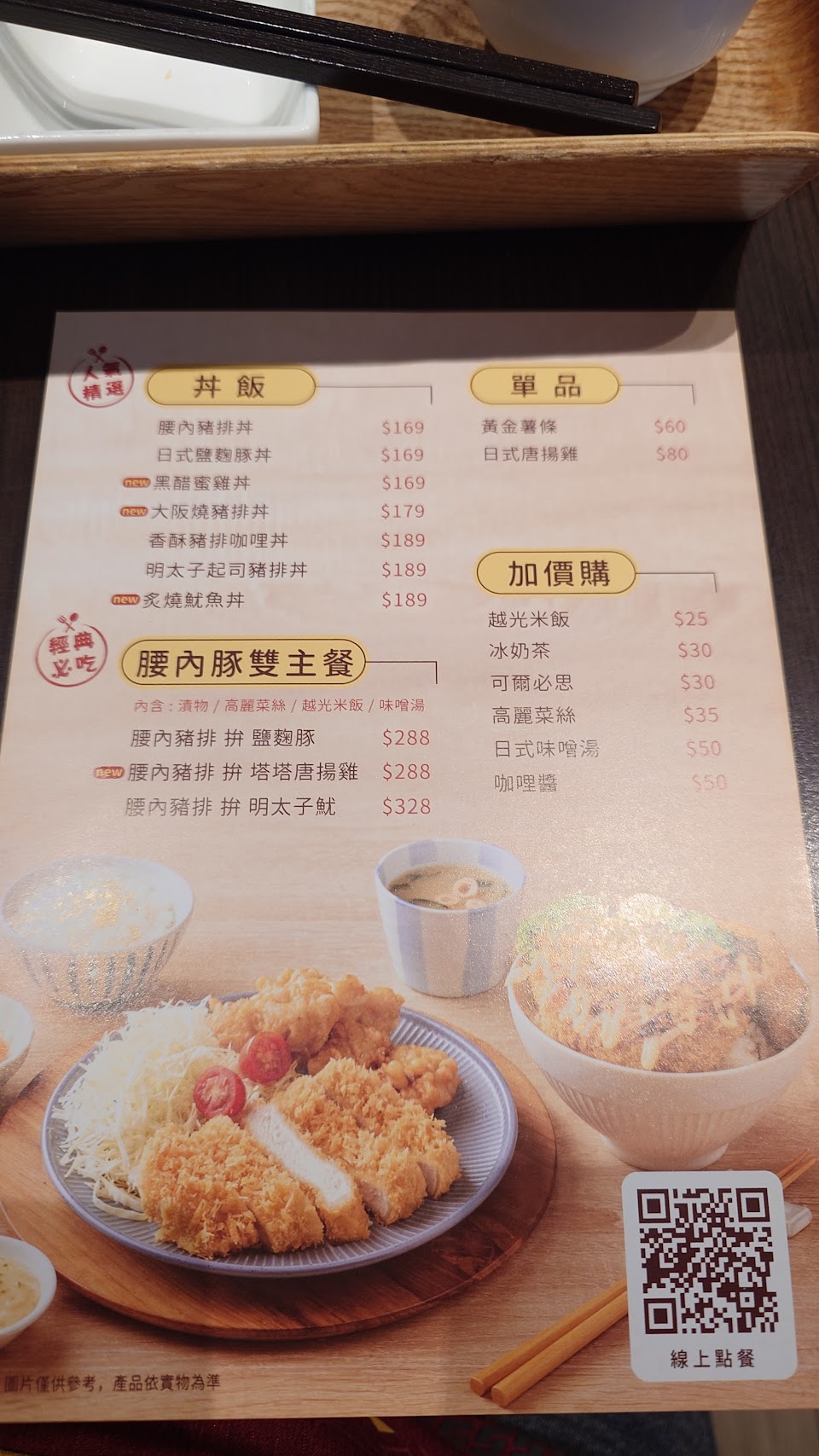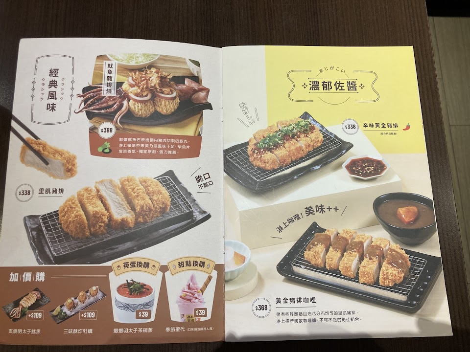 炙燒明太子魷魚, 重量級部隊豬排鍋, 豬排套餐, 彩蔬栗黑醋嫩雞, 日式唐揚雞