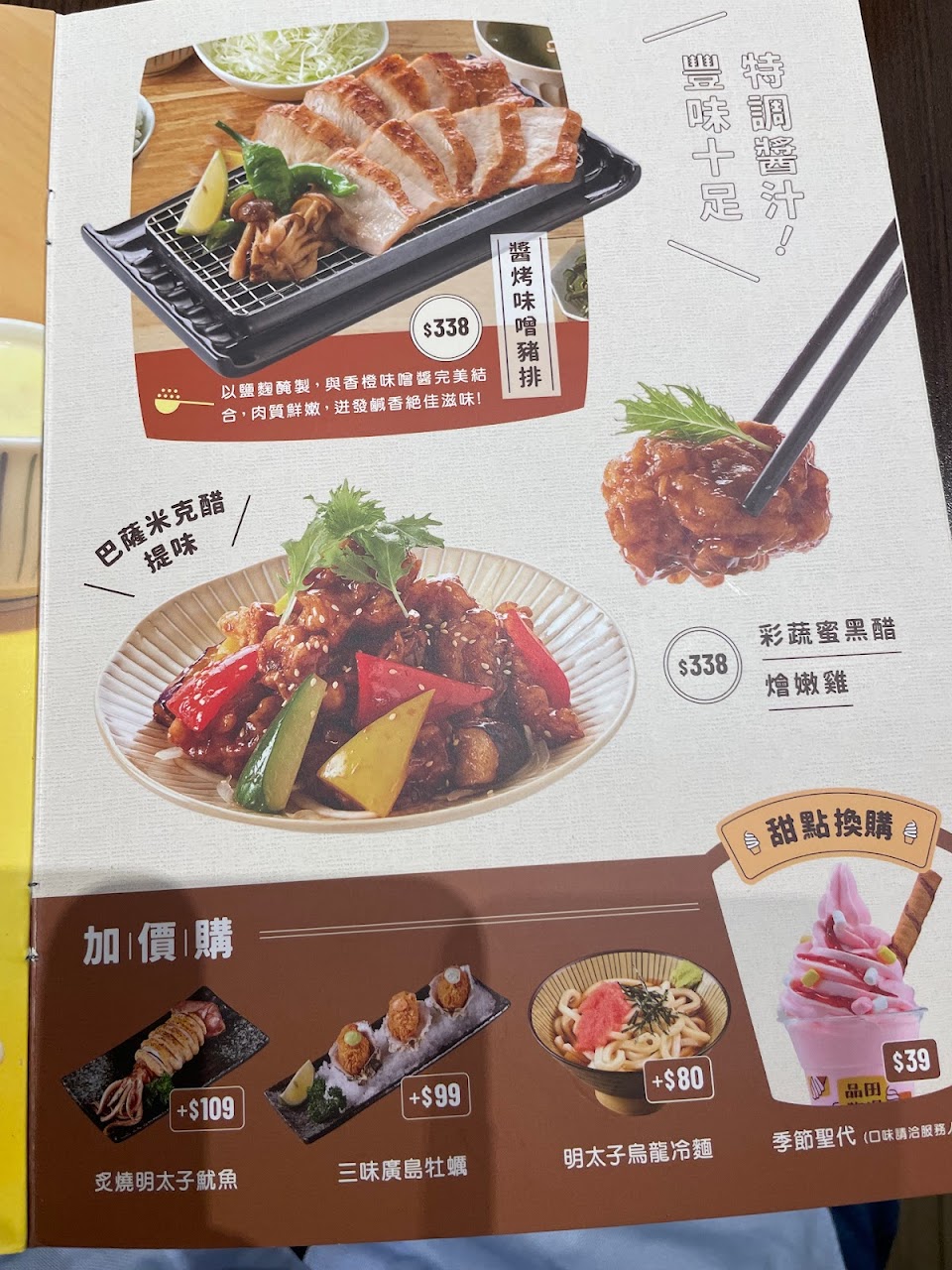 炙燒明太子魷魚, 重量級部隊豬排鍋, 豬排套餐, 彩蔬栗黑醋嫩雞, 日式唐揚雞