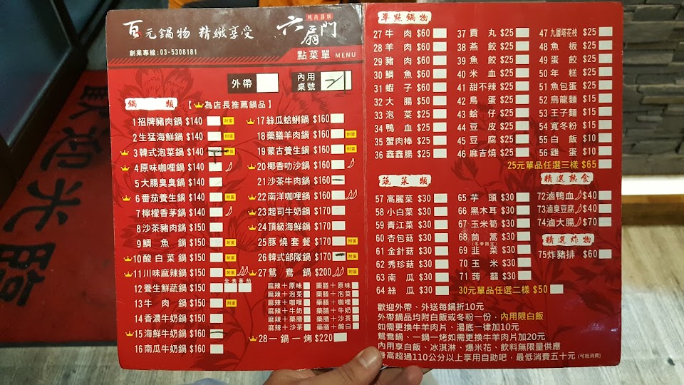 2024最新在地推薦餐廳的菜單_六扇門時尚湯鍋-苗栗府前店的菜單、圖片