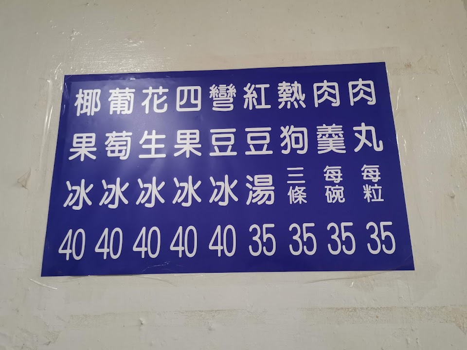 看菜單就知道,這裡其實是賣冰的吧! 羹內的魚漿很新鮮,但羹沒什麼甜味,所以羹2顆星,肉圓皮很Q肉好吃,CP值很高,比我拳頭還大~ 紅豆湯裡面有粉角、花豆,而且很大包,CP值爆表,可以給4顆星。 不過這裡是買肉圓的嘛,肉圓3顆星囉~
