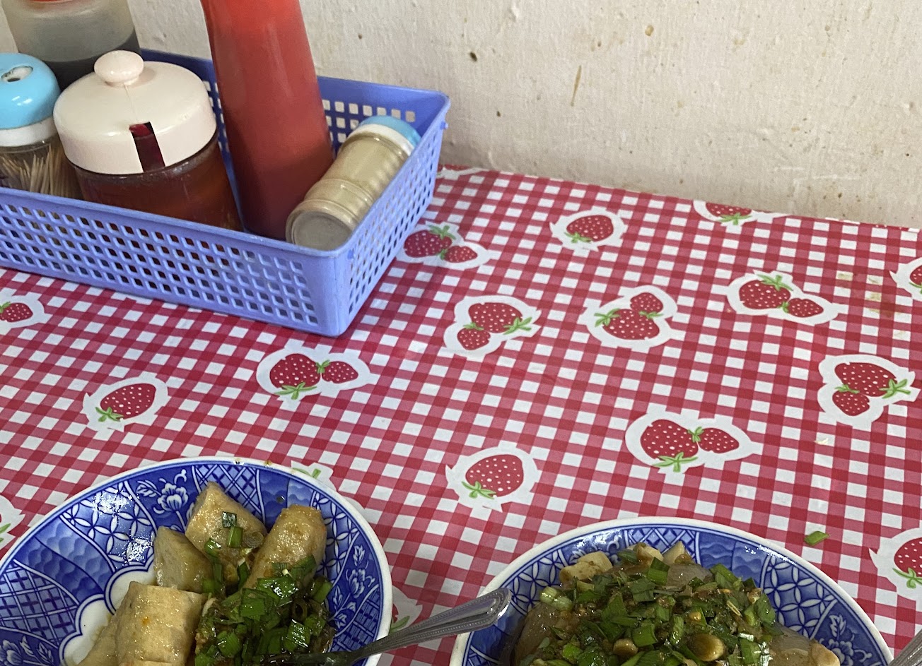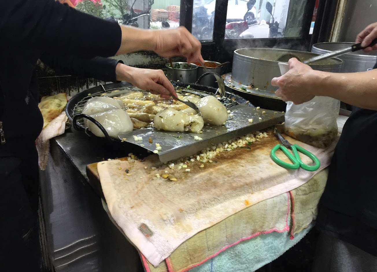 一個下大雨的午後,本來要去附近的隧道走走。但雨時在太大了,改變行程先來吃個傳說中的肉圓老店。 這邊的肉圓看起來像是北部包肉外觀透明使用油炸。等上菜後發現內部是包筍乾外面淋上韭菜,味道很搭。
