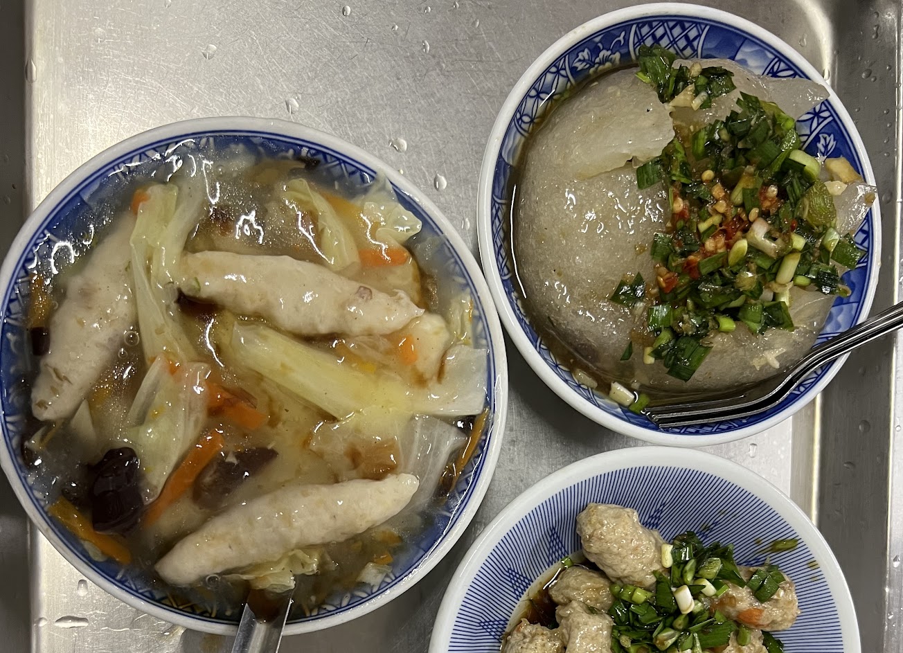 1120211-肉圓真的很大,但是肉不多,大部份是竹筍,但便宜是真的 肉羹湯則還好,甜不辣也一般,但是店家的速度真的不快