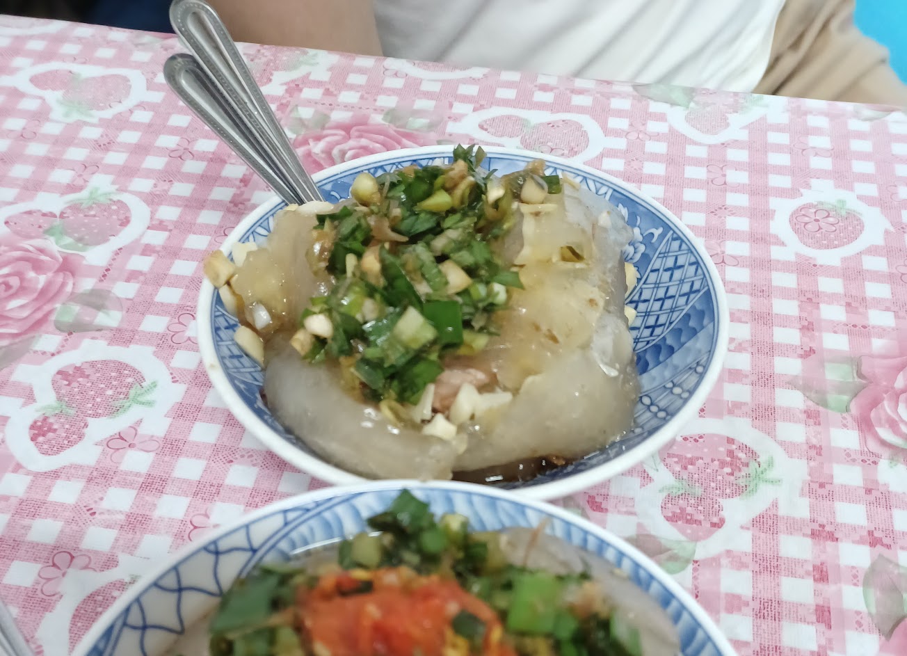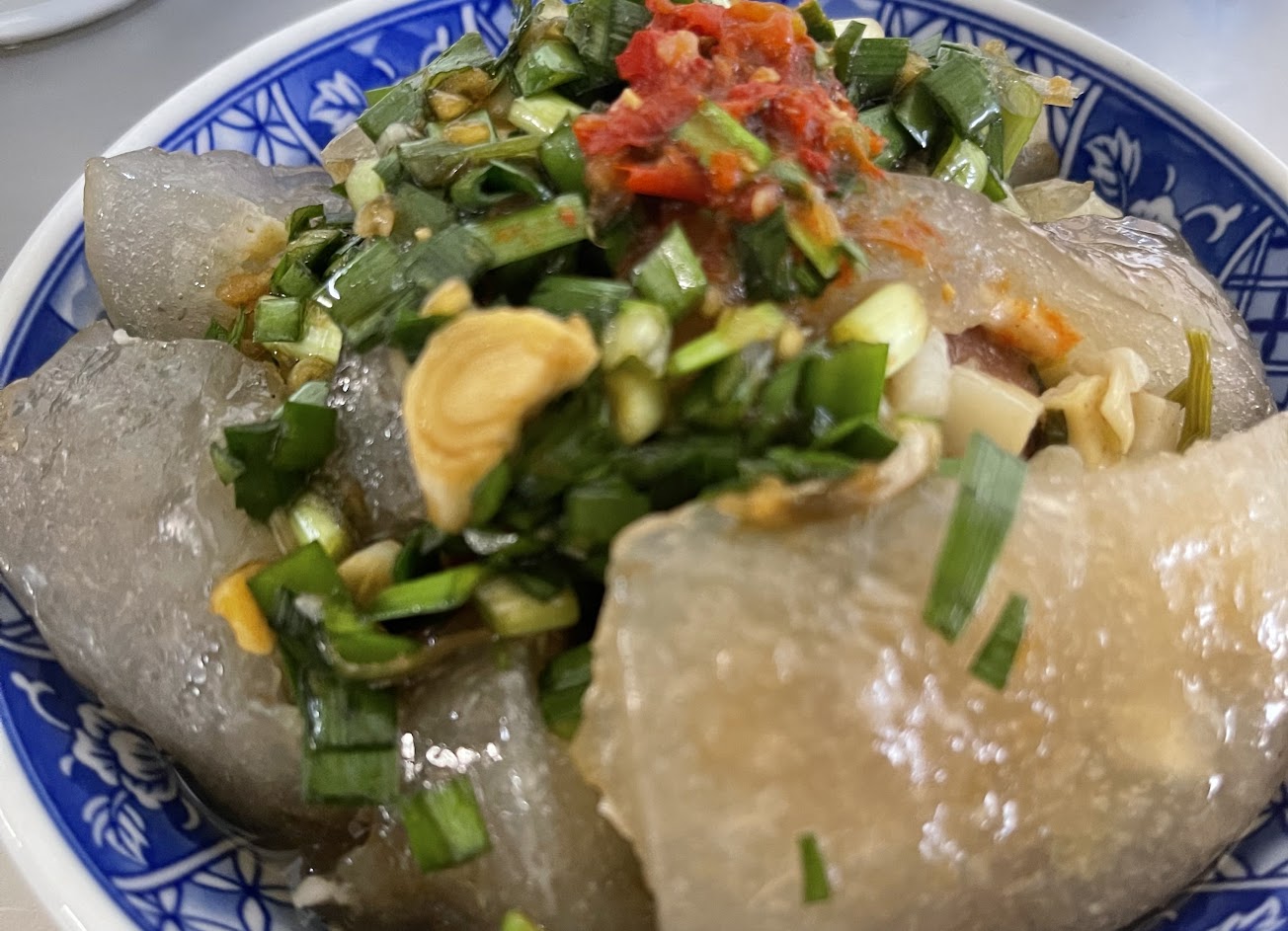 肉圓是當地人必買小吃 皮是硬Q有嚼勁的 醬料是醬油加碎辣椒 很特別!不是蒜蓉醬也不是甜醬更不是辣椒醬; 冰品不推薦 這次買的人少了不再現場刨冰先刨好冰起來所以吃起來很硬
