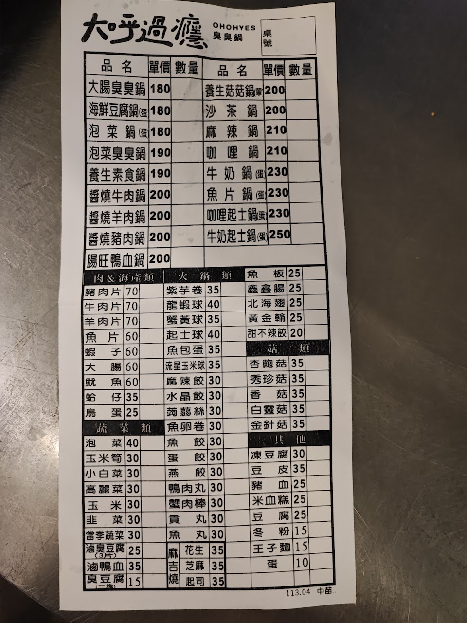 2024最新在地推薦餐廳的菜單_大呼過癮臭臭鍋的菜單、圖片