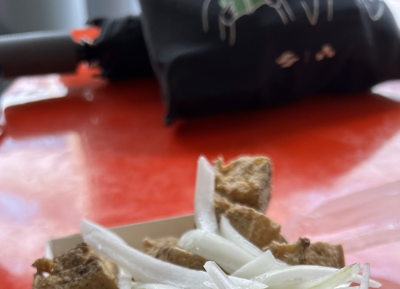 當天有點臭豆腐與一口酥; 一口酥好吃, 份量也滿足的可以點來當晚餐; 不算很臭但味道好,外酥內軟, 搭配洋蔥很入口.推薦大家跟自大有自信的老闆購買, 不會讓你們失望