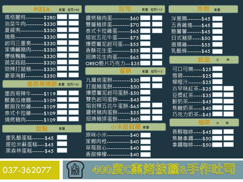 2024最新在地推薦餐廳的菜單_400度C窯烤披薩&手作吐司的菜單、圖片