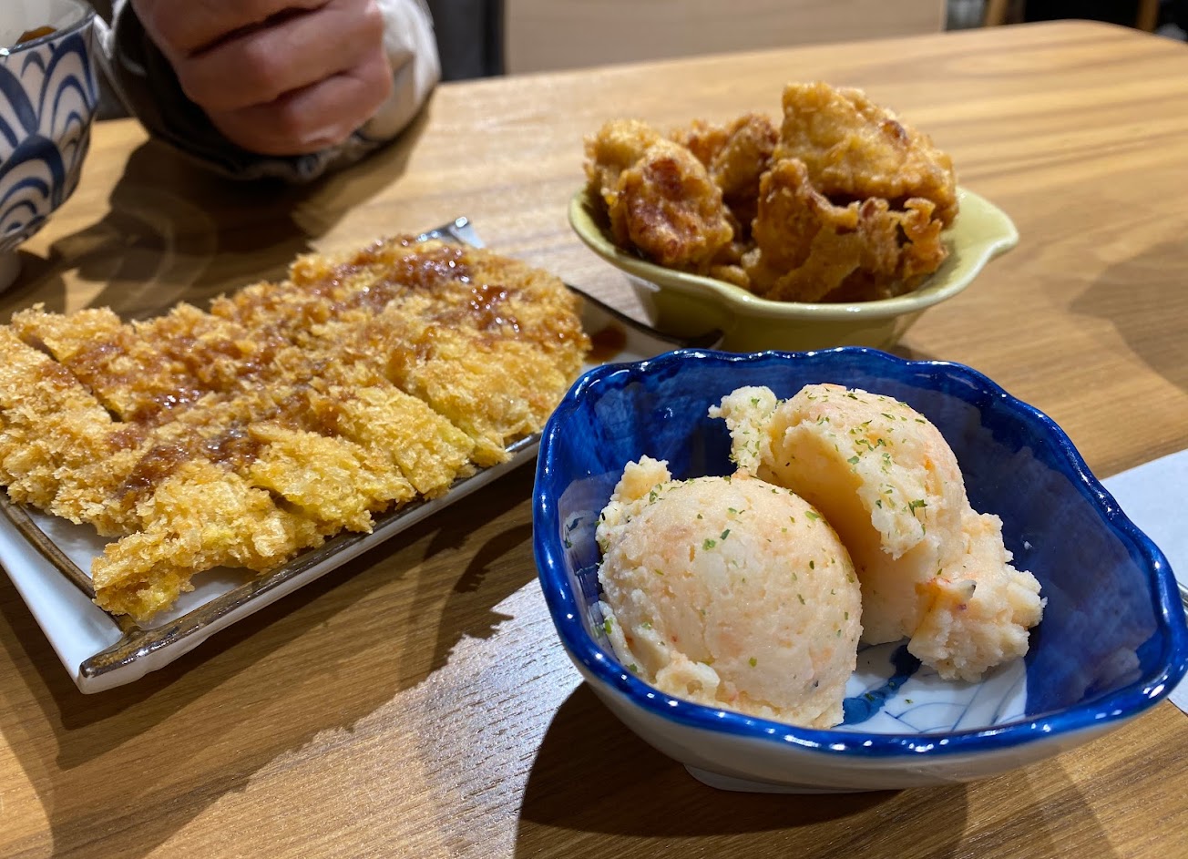 炸水餃和龍蝦沙拉, 松露薯條, 唐揚雞塊, 醬油叉燒