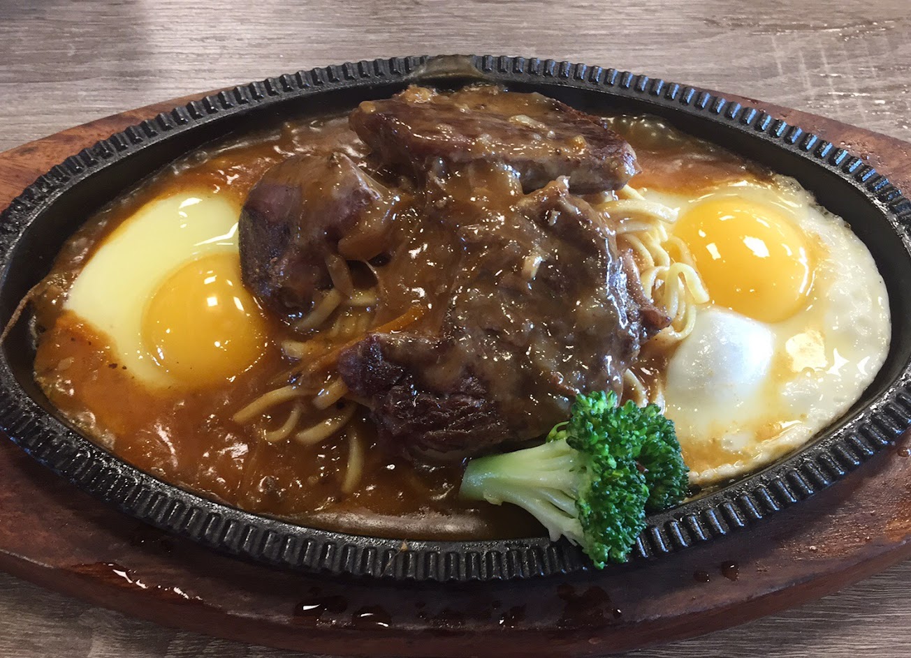 今天點綜合醬上品豬排,豬排算是大片,但豬排吃起來有點酸味,鐵板上的蛋有明顯的抹布味。