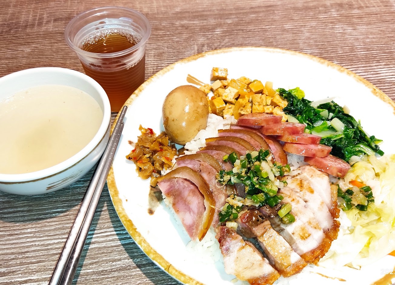 這裡的飯粒口感是我喜歡的,肉類都不柴,重點不會像一般燒臘店一樣鹹,配菜一般,附湯感覺有用大骨熬煮,所以湯頭還不錯。