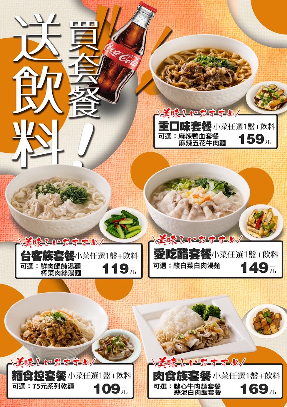 菜單有牛肉麵、飯類、乾拌麵、湯麵小菜等選擇?