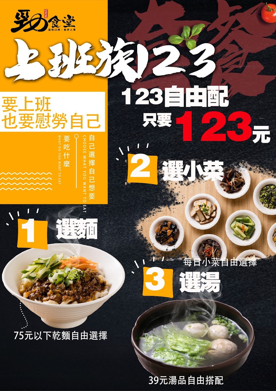 飯類套餐附湯、青菜和任選一疊小菜