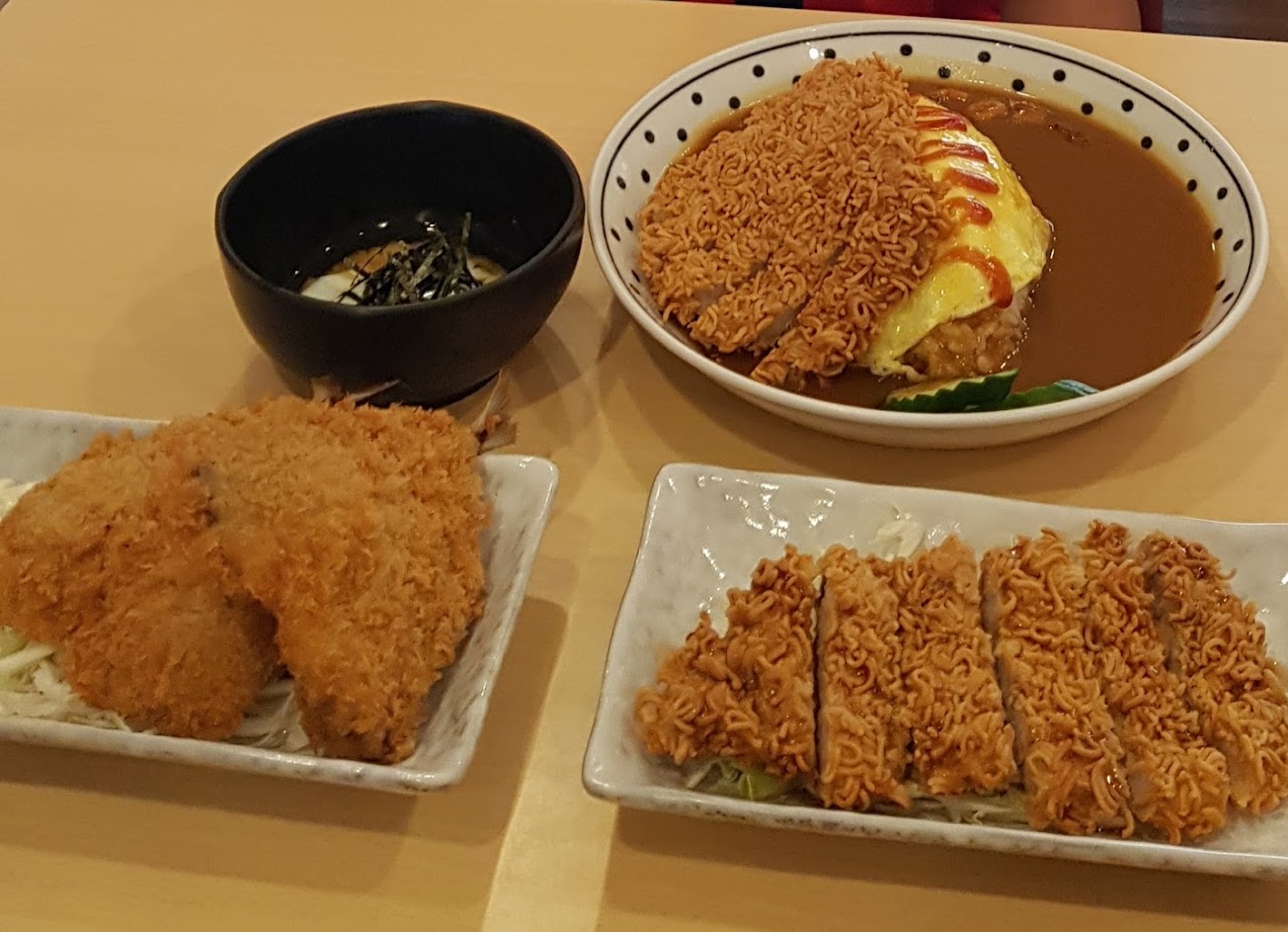 泡麵豬排挺特別的,取代麵包粉而是用泡麵當作裹粉去炸豬排。