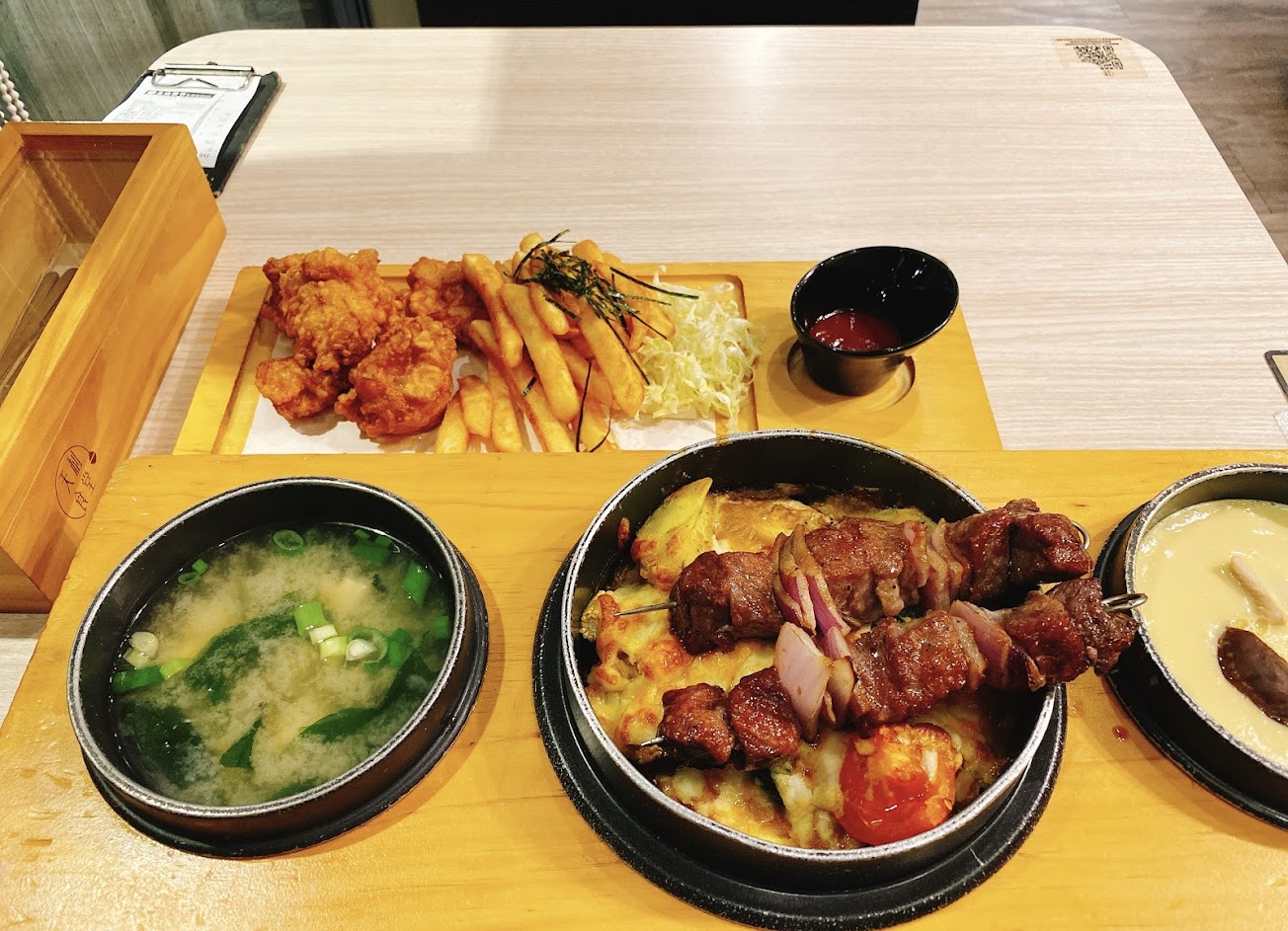我點的是牛肉烤咖喱加上唐揚雞薯條,份量真的很夠,味道算不上精緻但是有溫馨的感覺,用餐環境舒適,適合家庭聚餐。