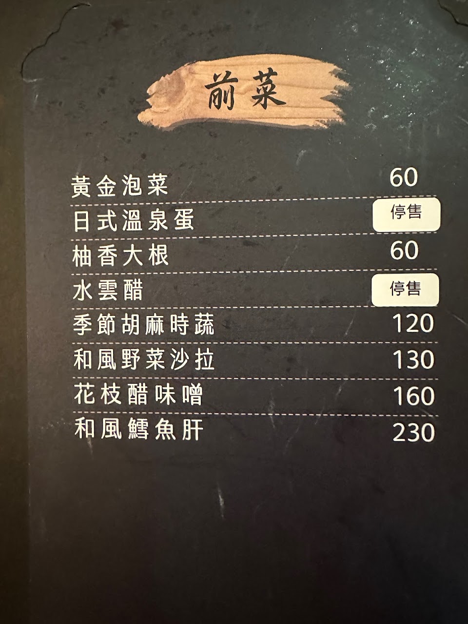 點了無菜單套餐600和800的,強烈建議幫套餐取一下名字,不然上菜一直說600、800的很奇怪。餐點是還不錯,但沒有到特別厲害就是,價位稍高,如果人多一些訂個包廂氣氛應該是還不錯呢!