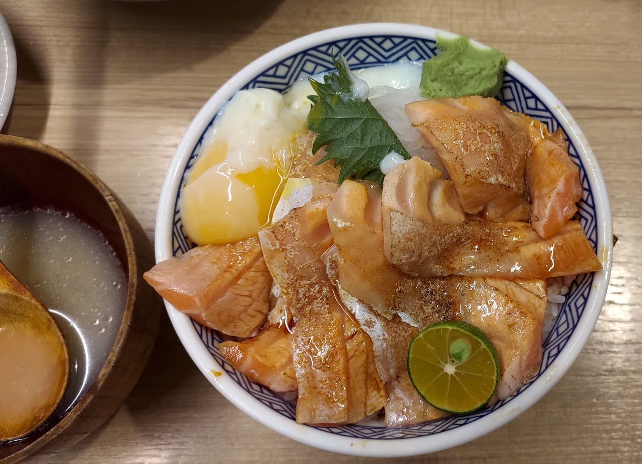 生魚片以及丼飯上的鮭魚新鮮厚實、非常可口