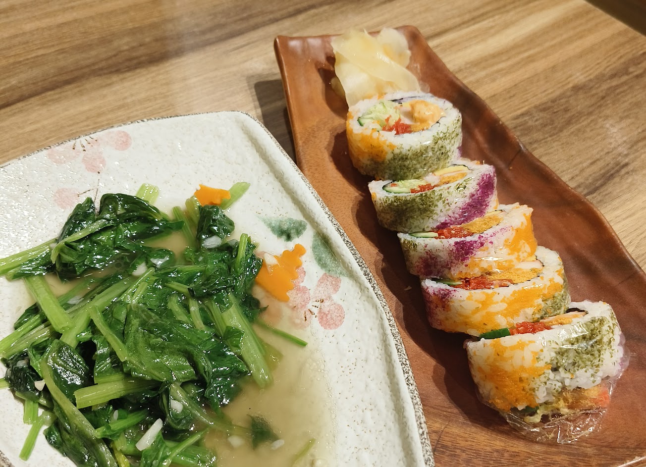 揚出豆腐大塊又酥脆、調味也好;茶碗蒸鮮香滑嫩好入喉;炒食蔬(菠菜)鍋氣足夠、口味洽到好處;辣味螺肉雖然感覺像罐頭的,但是也是Q彈好吃;花壽司的醋飯不錯,可惜內餡也包的很滿,可惜料的樣式沒有驚艷處;各式手捲好吃,但是才剛上菜時海苔已經不酥了;照燒雞腿雞皮烤的酥脆但是不易咬爛,雞肉厚實可惜沒有味道;芝麻海苔絲就一般般了!