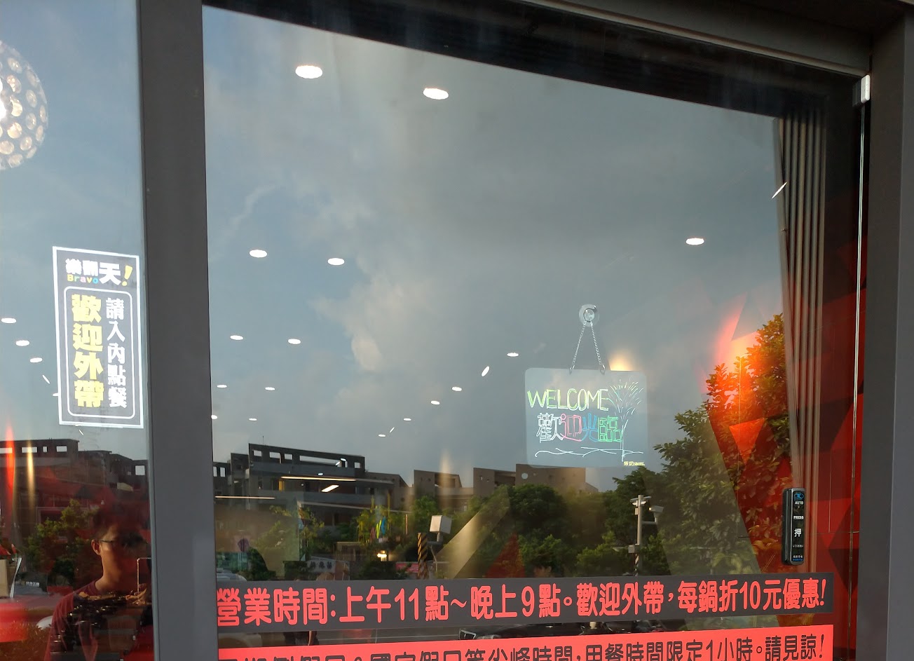 一進門櫃檯就很好的服務,然後有觀察到員工清潔很認真,椅子啊,爐架都用酒精擦感覺,內部環境整體空間都是整潔的,不過因為人多,飲料機的粉似乎不夠XD飯也來不及出的樣子,可能補自助吧的部分要注意