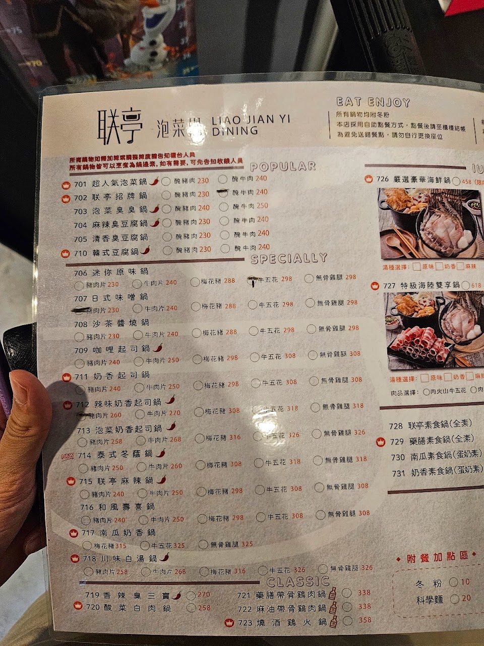 2024最新在地推薦餐廳的菜單_联亭泡菜鍋 頭份店的菜單、圖片