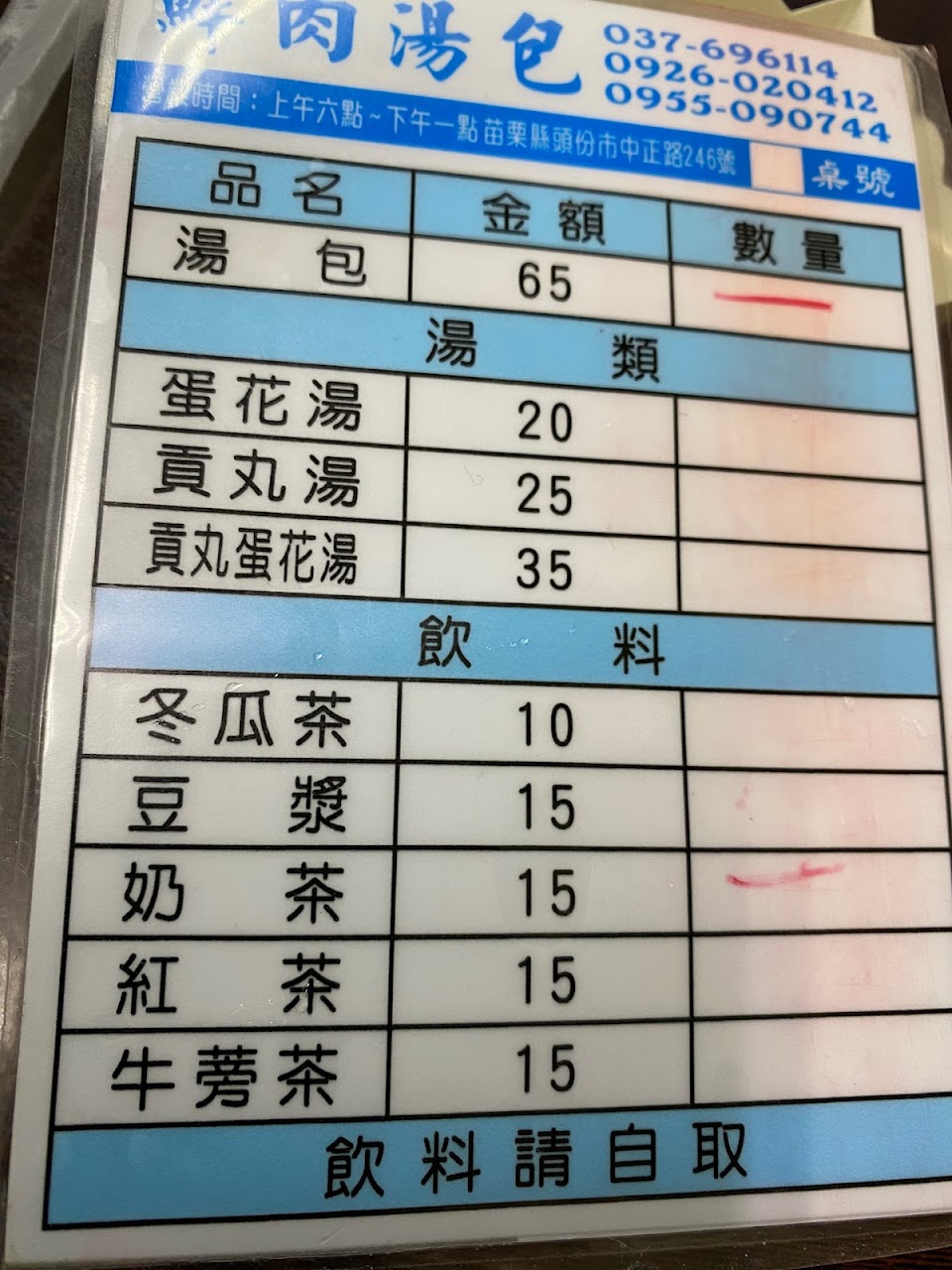慕名已久,每次看到的圖片都是湯包上佈滿滿滿的蔥,今天臨時起意來苗栗玩,突然靈光一閃想到可以吃這個。打電話詢問營業到幾點,確認還來得及就馬上衝了!