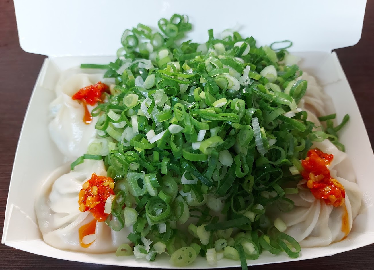 皮薄餡多汁多蔥給的又大方,好吃!可惜沒開放內用,想朝聖內用時自助蔥花的樣子,建議搭配湯匙一起用餐,因為太大顆無法一口塞,不然湯汁都流光了