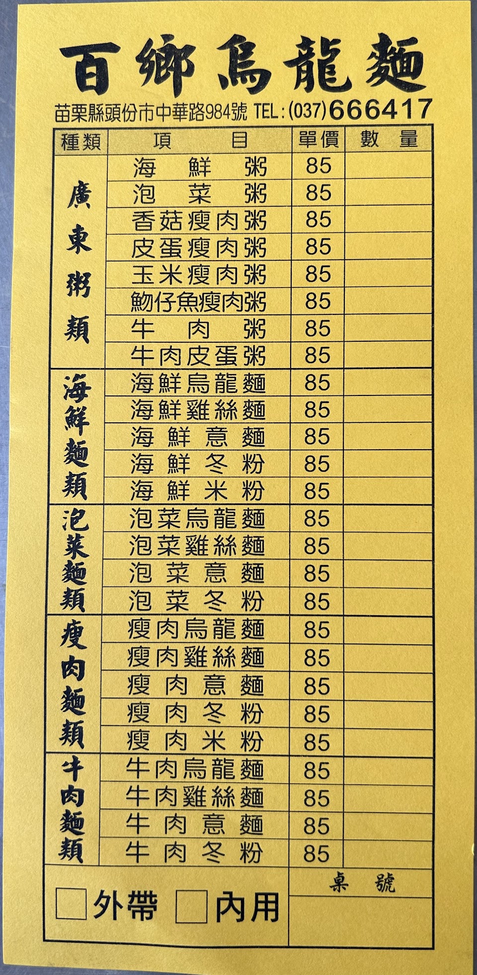 2024最新在地推薦餐廳的菜單_百鄉烏龍麵的菜單、圖片