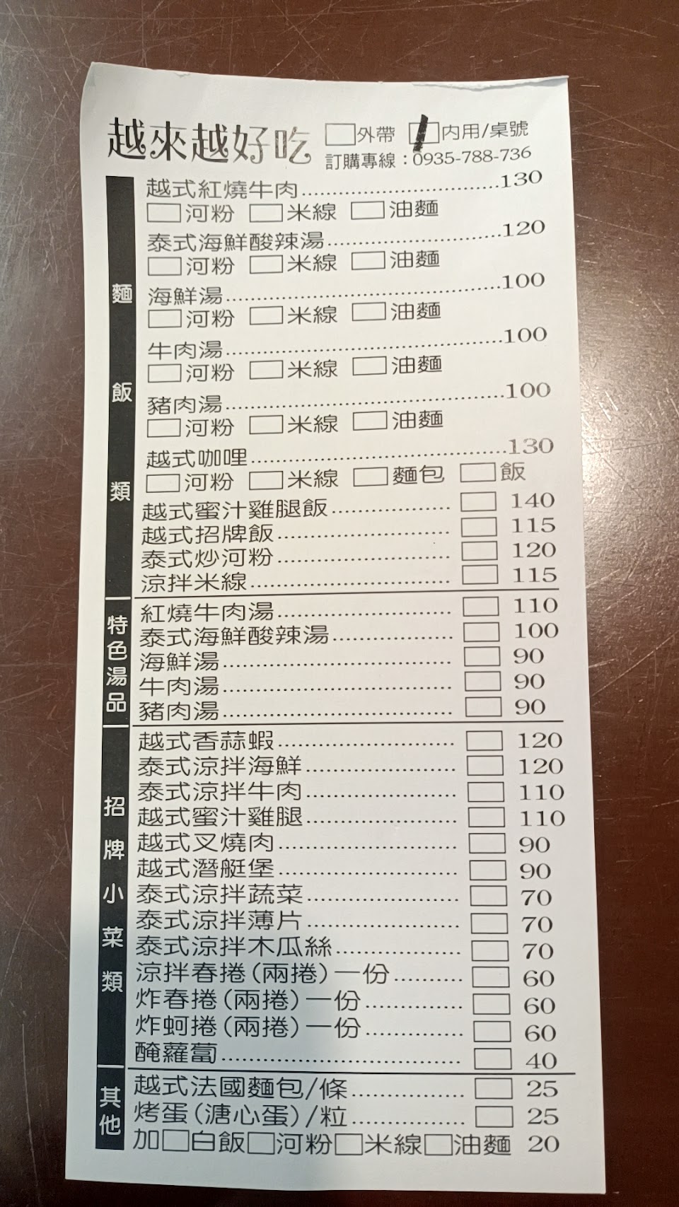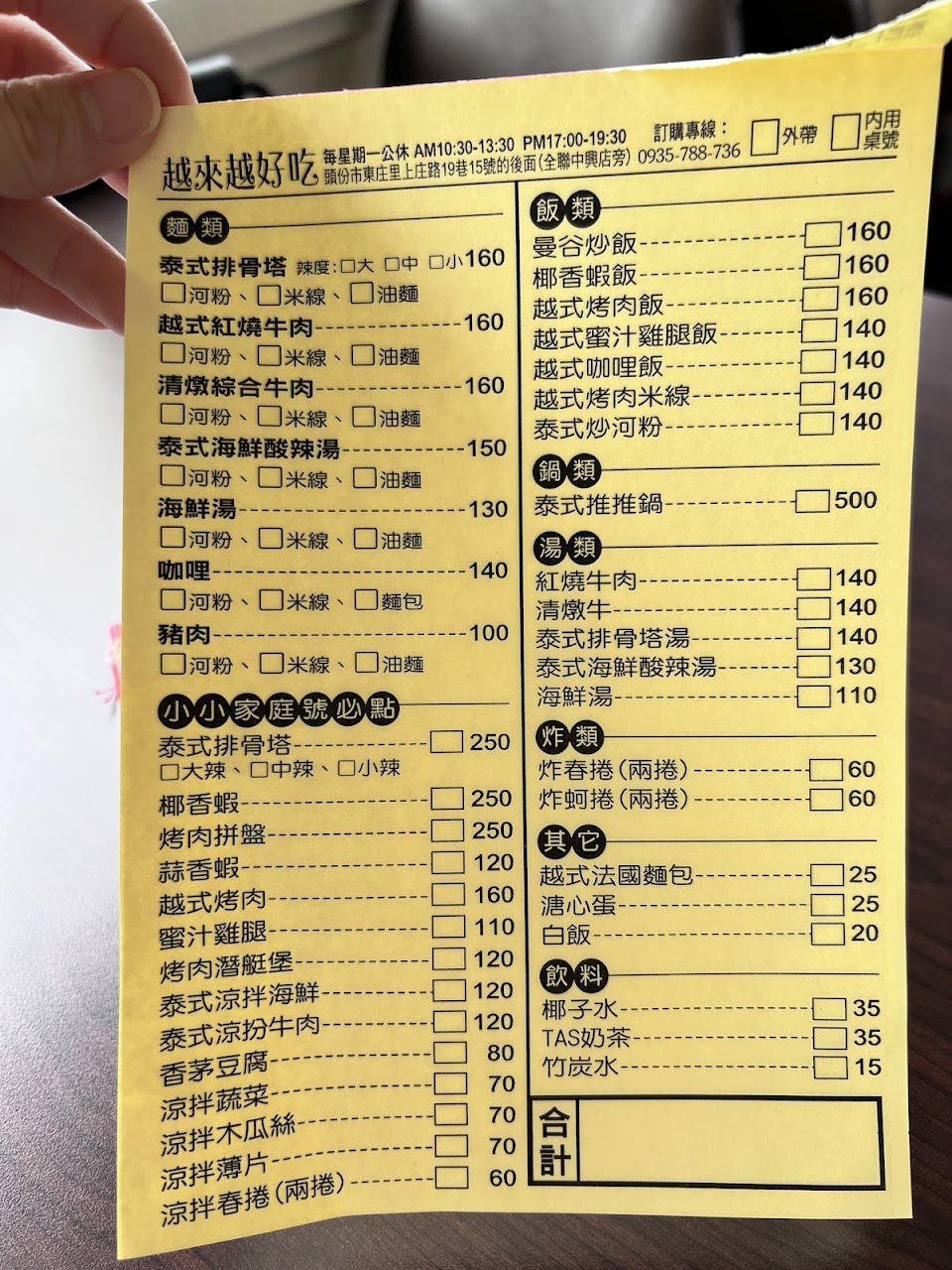 口味道地,越南同事都說好,上菜速度好,價格實在,河粉Q滑好入口,湯頭桓佳,法式潛艇堡內豬頭肉香,青木瓜絲爽脆,麵皮酥脆不硬,真是好。