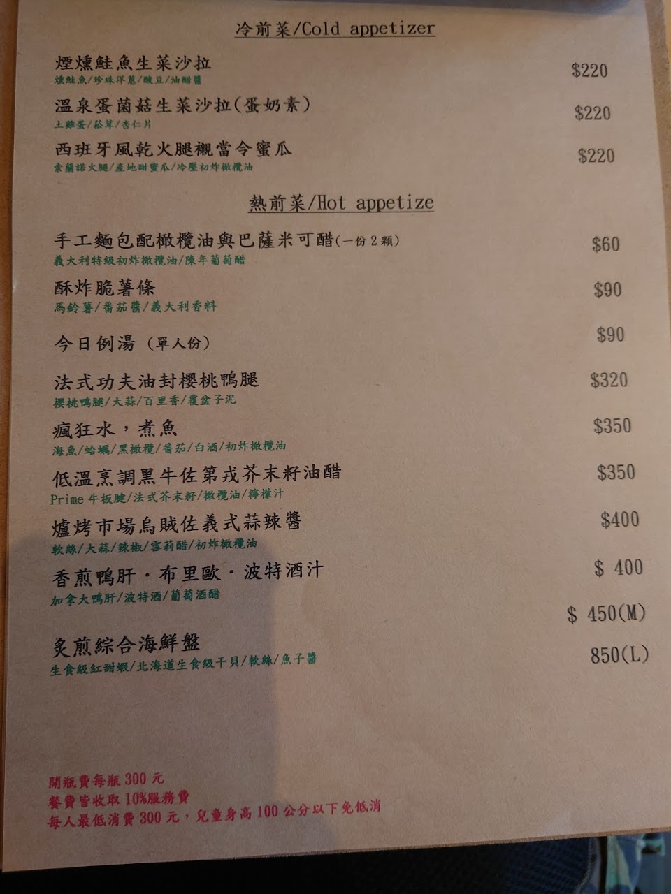食材新鮮,加上對每種味道和料理方式的了解,成就一道道美觀又美味的佳餚,從麵包到甜點,每一道都藏有一些刺激味蕾的小巧思,厭倦了那些鹹膩厚重又一成不變的連鎖餐飲或火鍋的人們可以來試試。